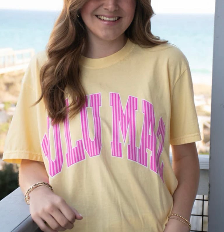 Lulu Mac Yellow and Pink Striped Tee Adult and Youth