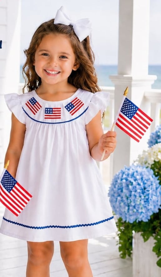 White smocked Flag Dress